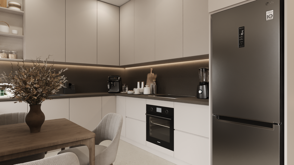 Our aim was to create a modern yet comfortable studio apartment with a clean, minimal aesthetic. Through careful planning and thoughtful detailing, we maximized functionality in a compact space. Warm neutral tones, integrated lighting, and custom storage solutions helped us deliver a calm, elegant environment tailored to the client’s everyday needs.